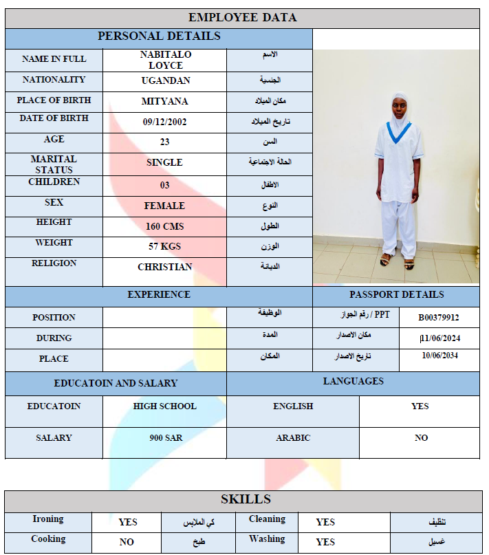 بيانات العاملة
