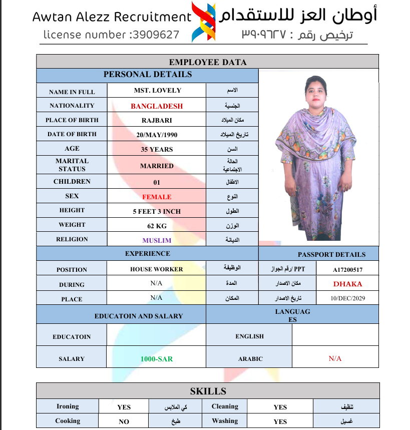 بيانات العاملة